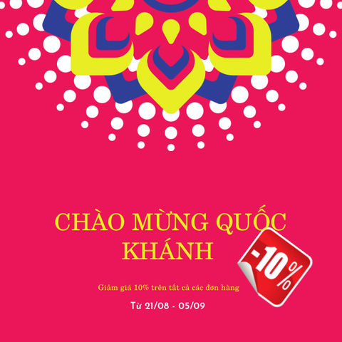 Chào mừng ngày quốc khánh 2/9 giảm 10% cho tất cả các đơn hàng