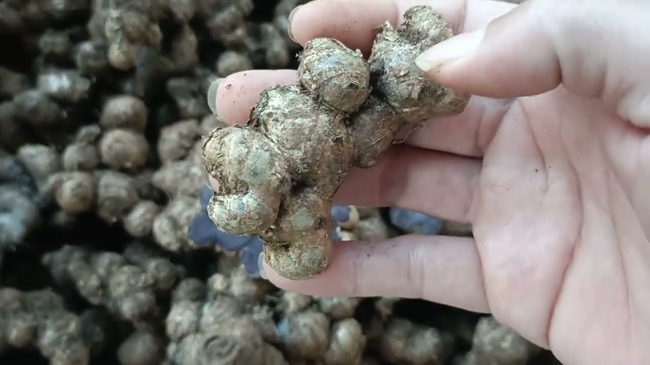 Gừng đen, hay còn gọi là ngải tím, là một trong những dược liệu quý hiếm được ví như "vàng đen" của núi rừng Tây Bắc. Đây là một loại cây thuộc họ gừng, với thân cao hơn 1m, lá to hình tròn, hoa có màu vàng hoặc tím. Đặc điểm nổi bật của gừng đen là hương thơm đặc trưng, vị cay nồng pha chút đắng nhẹ, và phần thịt bên trong có màu tím đen ấn tượng. Hình dáng củ gừng tròn và có nhánh, khi cắt lớp vỏ ra sẽ thấy lớp thịt màu tím đen lộ diện, làm nên sự độc đáo của loại dược liệu này.